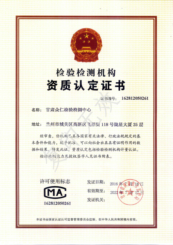 甘肅眾仁檢驗檢測中心是我公司下屬具有獨立法人資質的第三方檢驗檢測機構,于2015年8月成立。中心現有高級工程師1人,工程師2人,助工7人,技術員9人,其中研究生學歷2人,本科14人,大專3人。內設辦公室、財務室、業務室、檢測室四個管理機構,檢測室設理化室與微生物室兩個科室。實驗室占地一層,建筑面積900平方米,在布局、采光、通風排污、凈化等方面均符合實驗條件的要求,確保實驗室環境符合檢驗檢測工作需要。